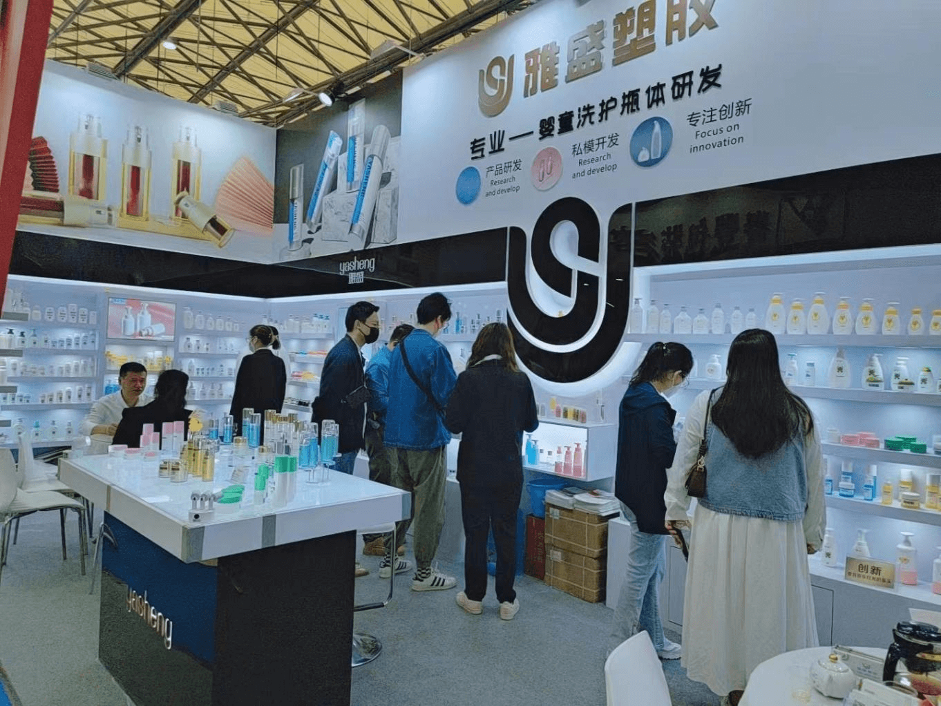汕头雅盛塑胶实业有限公司有幸成为此届美博会的参展企业之一。在展会上,我司主要向外界呈现两大产品板块:婴童洗沐包材和成人护肤包材。新颖的设计风格,卓越的工艺技术,优质的样品质感,吸引了国内外许多逛展者的目光并给他们留下深刻的印象。